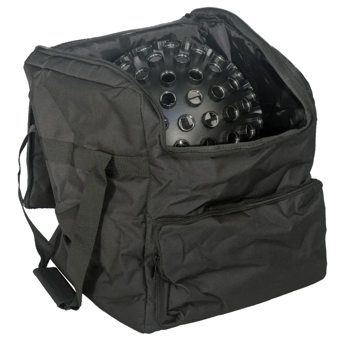 • Works with all brands of lighting fixtures • Affordable padded soft cases designed to protect and extend the life of mobile lighting fixtures • Great for mobile DJs, Karaoke rigs and working bands • Secured zipped pocket for storing extra lamps, clamps, cables and other accessories • Saves valuable transport space by allowing fixtures to be stacked without having to be boxed • Secure "view windows" on Arriba Cases make it easy to identify specific fixtures even after they've been packed, or place your business card in the window for personal identification • Extra wide mouth design allows gear to be removed quickly and easily.