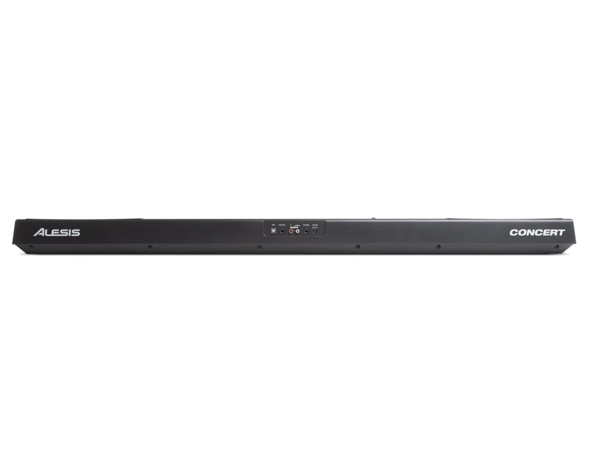 Alesis Concert har en otroligt användbar funktion som kallas "Lektionsläge". Denna funktion delar upp de 88 tangenterna i två zoner med samma tonhöjd och röst. Detta gör att både elev och lärare enkelt kan titta på varandra och spela tillsammans utan att behöva turas om eller sträcka sig över varandra. Concert har också en ¼” (6,35 mm) hörlursutgång som dämpar de interna högtalarna för bekväm, tyst privat träning.