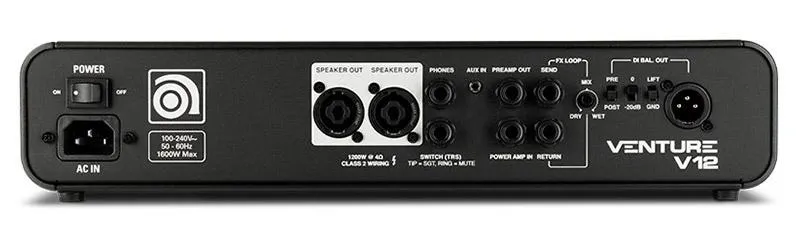 Det bärbara och kraftfulla 1200-watts Venture V12-huvudet har vår Legacy Preamp och 3-bands EQ med svepbara mellan, Ultra Hi/3-vägs Ultra Lo-switchar, en fotkopplare SGT Overdrive-krets med SVT- och B15-voicing, och en variabel kompressor.