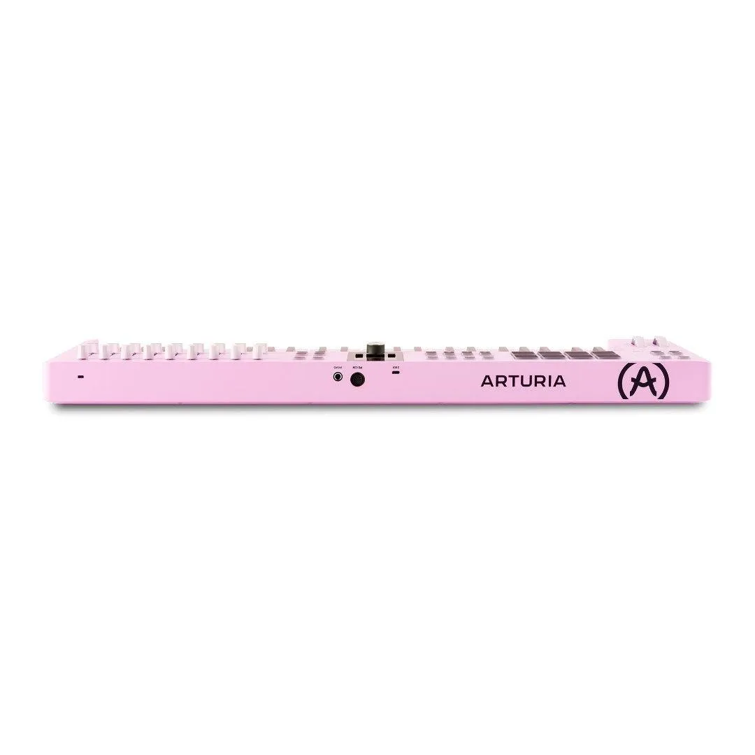Anpassade DAW-skript (Ableton Live Lite, Logic Pro, FL Studio, Cubase, Bitwig Studio) Sömlös integration med Arturia Software Användarprogram Musik direkt Plug-and-play Stort programvarupaket Scale mode Arpeggiator Chord Play mode Eco-design, ren, fokuserad och intuitiv interface Premiumkvalitet, prisvärd Större display med 4 kontextuella knappar 5 dedikerade DAW-skript plus MCU & HUI-protokoll Förbättrad integration med Arturia Software 2 Pad Banks Mångsidig pedalanslutning (Sustain, Footswitch, Expression) USB-C-anslutning Velocity-känslig tangentbädd med hybrid synth-piano känsla 1 klickbar encoder, 9 encoders, 9 faders (30mm), 6 transport switches, 4 command switches, 1 modulationshjul, 1 pitch bend-hjul, 8 touch & tryckkänsliga pads MIDI out, USB, Sustain pedal Premium musikskapande programvara ingår