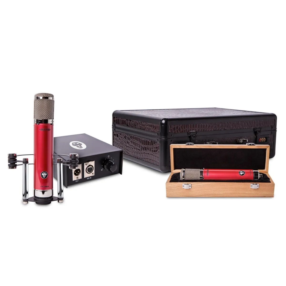 Slutligen inkluderar CV-12BLA ett helt nytt svart faux alligator skin-fodral som inte bara skyddar mikrofonen när du transporterar den, utan också ser bra ut när du gör det!