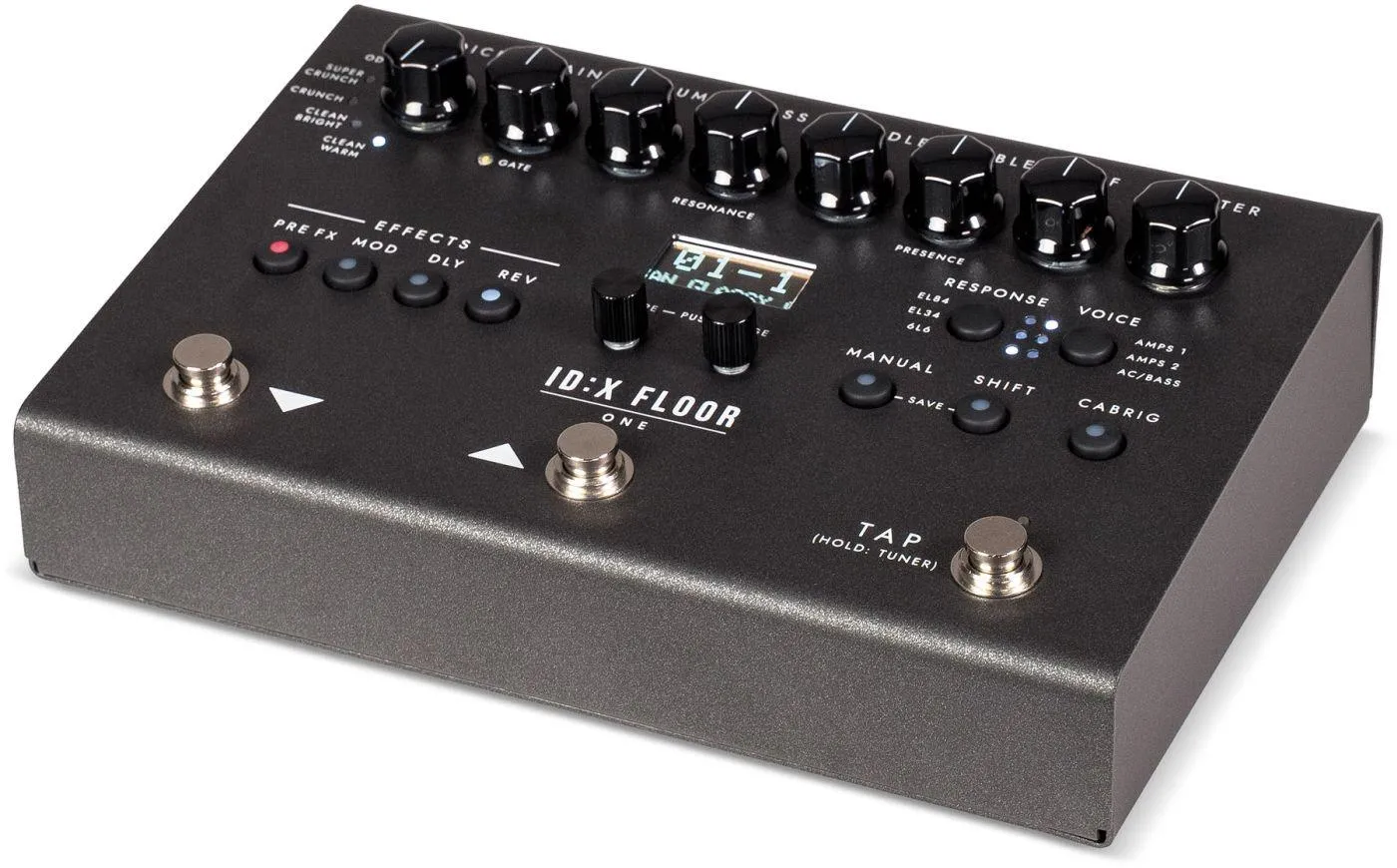 Med över 35 inbyggda effekter, MIDI-styrning, USB-C-ljudinterface, balanserade stereoutgångar via XLR och hörlursutgång för tyst övning passar ID:X Floor One sömlöst in i alla moderna riggar. Ett kompakt och mångsidigt verktyg för professionellt ljud i ett smidigt format.