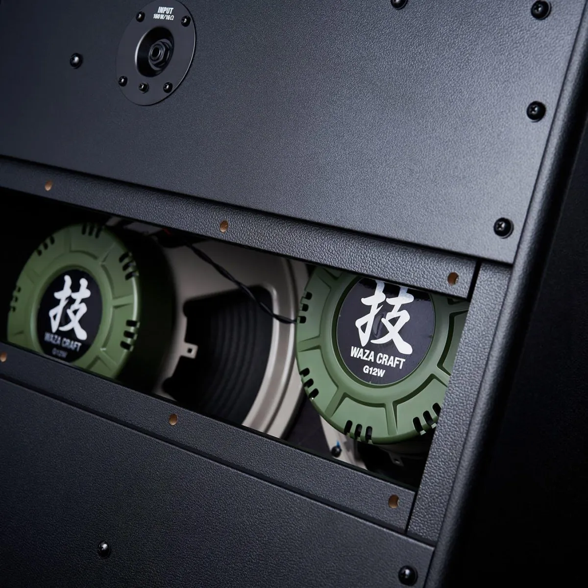 Flaggskeppet Katana-skåp laddat med två 12-tums Boss Waza-högtalare för den ultimata rocktonen.
