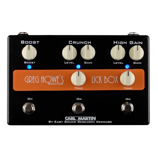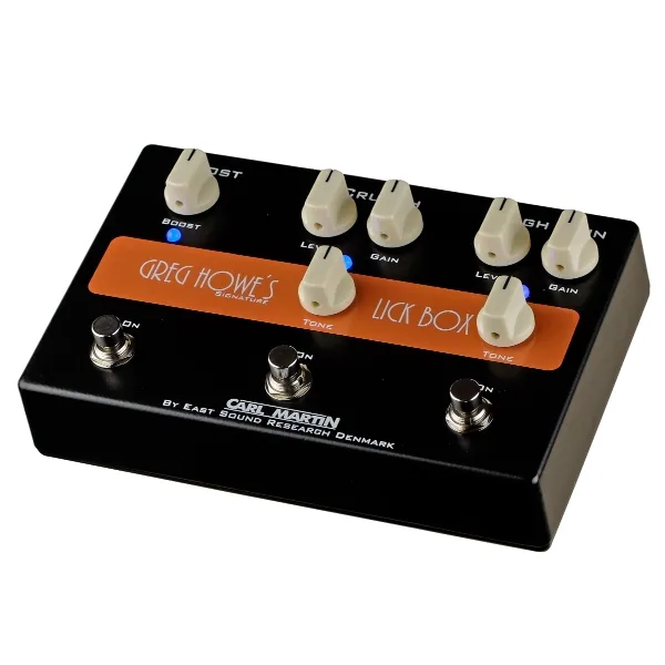 Greg Howe Signature Lick Box är en mångsidig gitarrpedal i metallhölje som kombinerar Greg Howes ikoniska High Gain- och Crunch-toner med avancerad manipulering. Pedalen har tre separata sektioner: Boost, Crunch och High Gain, var och en med egna kontroller för nivå, gain och ton.