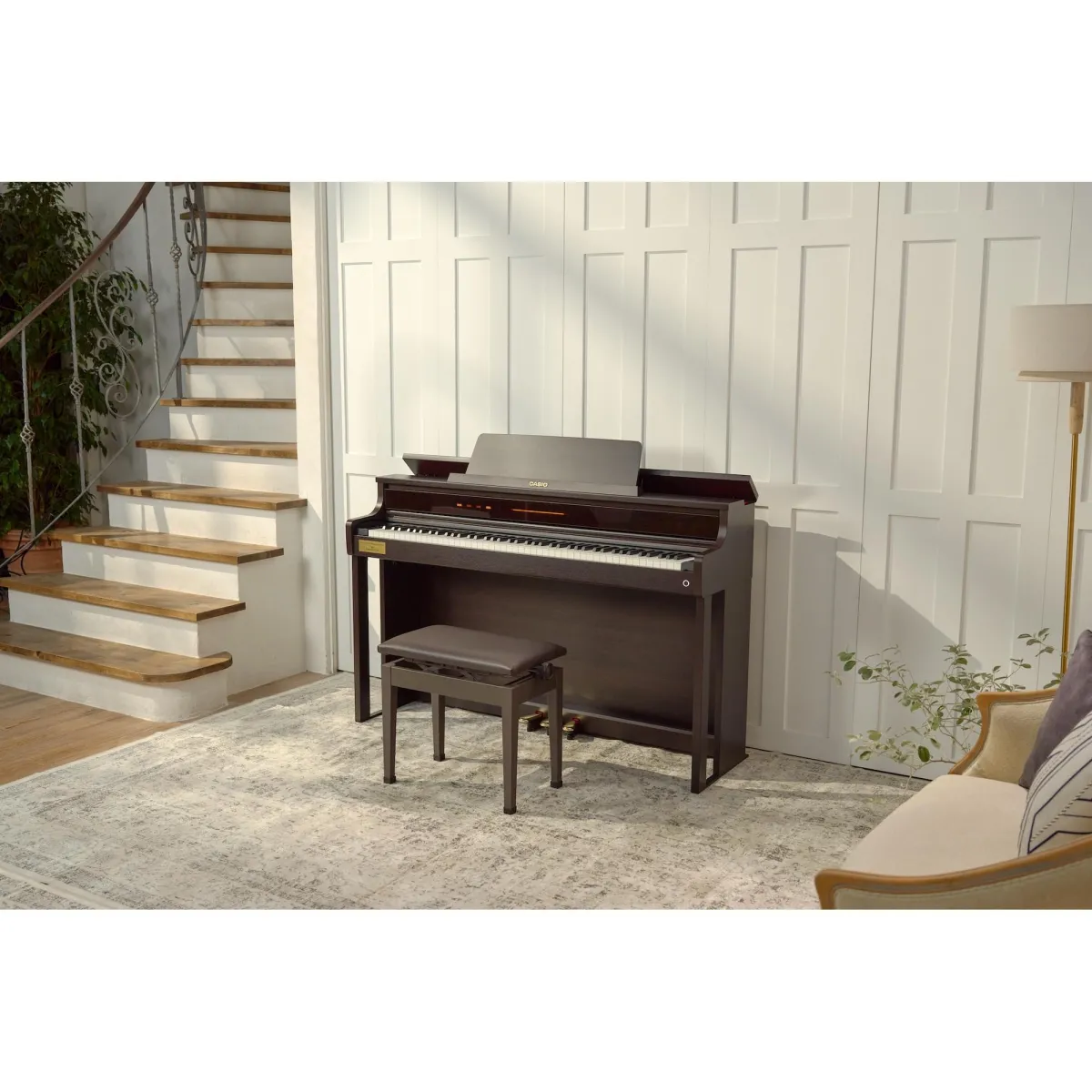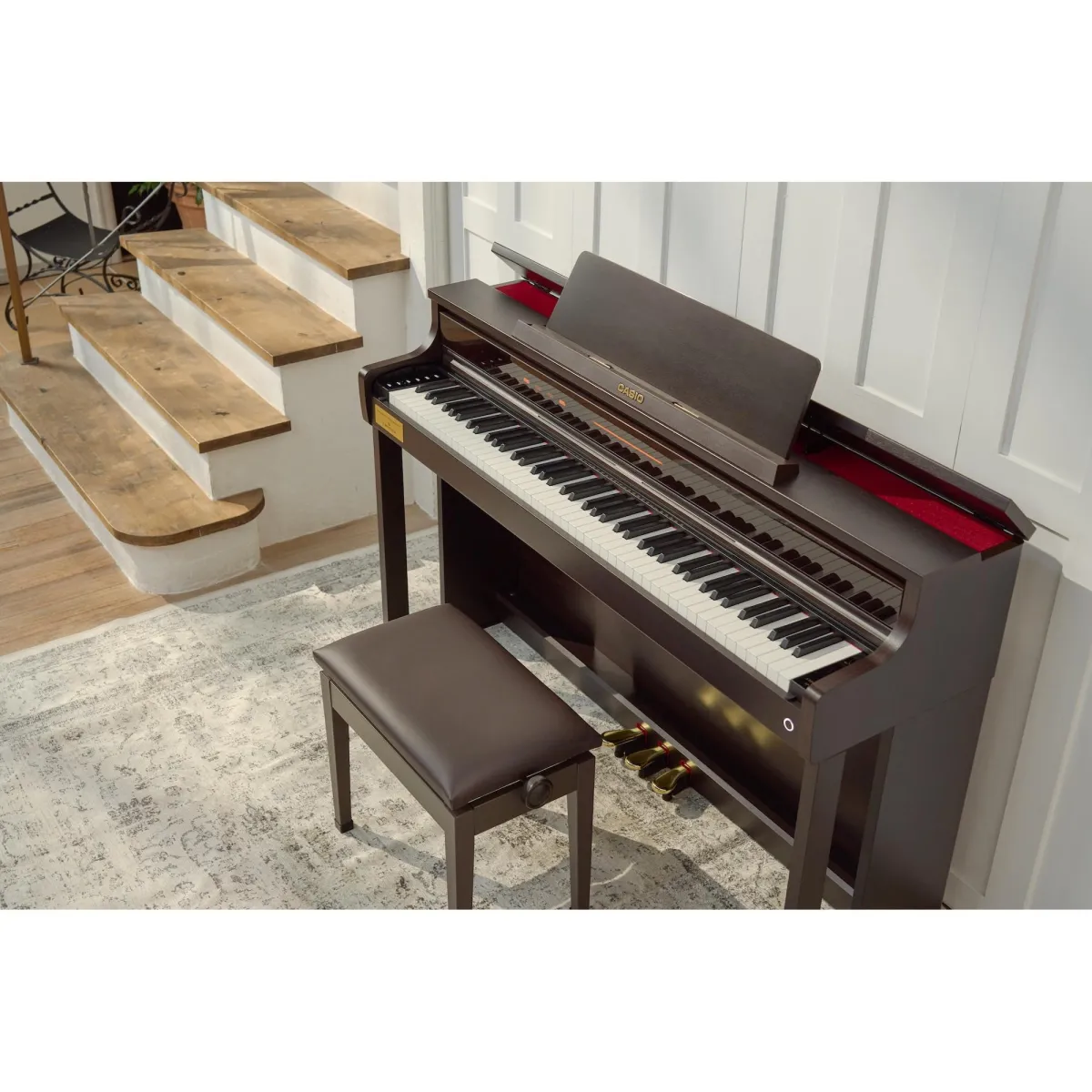 Upptäck äkta grand-piano-känsla och modern spelglädje. AP-750 i brunt kombinerar avancerad ljudteknik med en samtida musikupplevelse för att förhöja ditt spel och öppna nya möjligheter. Inbyggd ljudkvalitet inspirerad av högklassiga grand pianos och ett realistiskt tangentbord ger en autentisk pianokänsla.