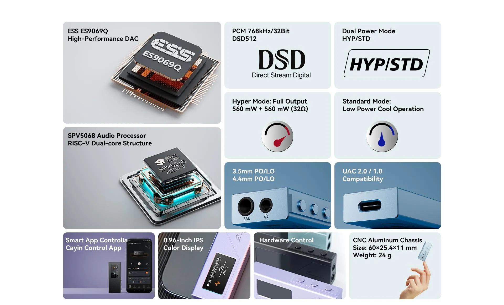 Kraftfull DAC-teknologi: Utrustad med ESS ES9069Q HyperStream IV Dual DAC för kristallklart, naturligt och otroligt detaljerat ljud.