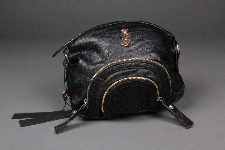 Crossbody-väska, syntetläder, justerbar axelrem, två framfickor med dragkedja, paljettdetaljer på framfickan, öppen ficka och mobilfack på insidan, ficka med dragkedja på insidan, 27x20x7, svart.