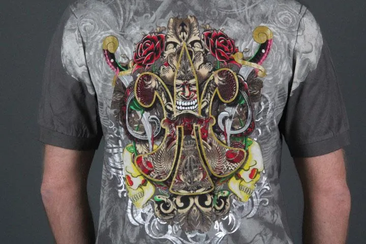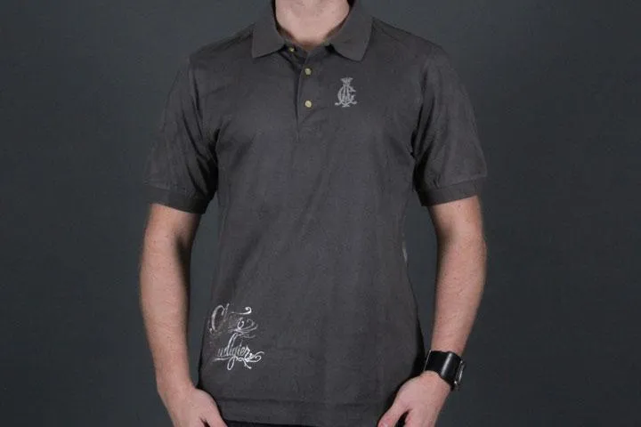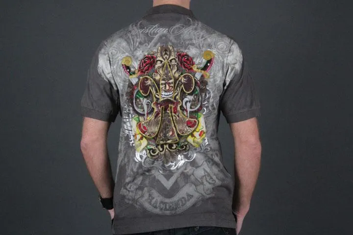 Polo piqué från Christian Audigier med häftigt Hacient Grey tryck. 100% bomull. Herr, grå, large.