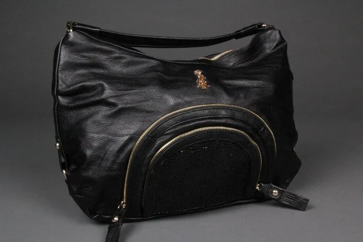Holly Hobo-väska, syntetläder, två framfickor, paljettdetaljer på framfickan, öppen ficka och mobiltelefonfack inuti, ficka med dragkedja inuti, dragkedja, 47x29x12, svart.