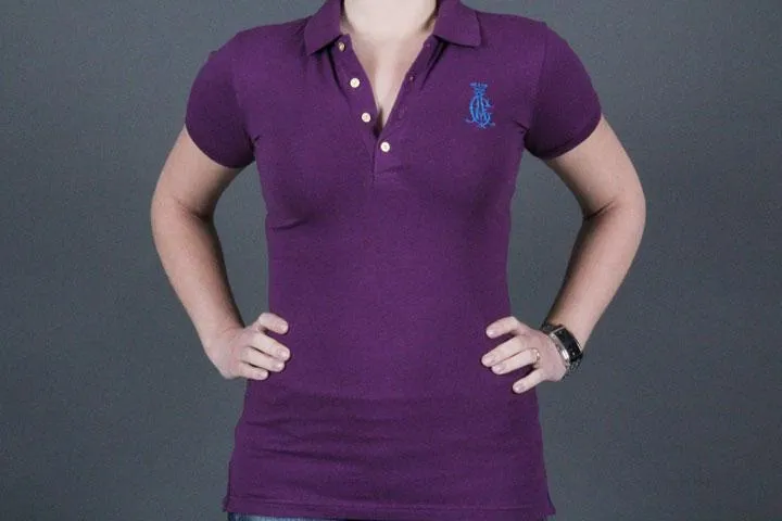 Lång polotröja för damer, Figurnära, Stretchigt material, 95% bomull 5% spandex, Print med sammets- och kristalldetaljer, Normal storlek. Dam, lila, medium.