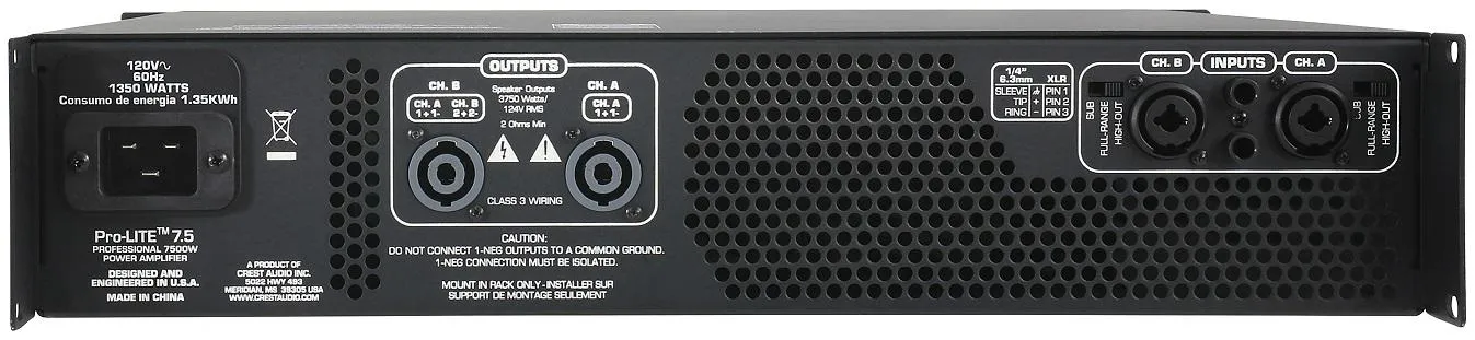 Pro-LITE 7.5 är designad med avancerad och snabb klass D-design. Det tillförlitliga switchade nätaggregatet ser till att den totala effekten hålls stabil samtidigt som förstärkarens vikt och värmeutveckling minimeras.
