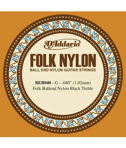 BEB040 is a .040 gauge ball-end black nylon guitar string. Perfect as a replacement string or for creating custom sets. Part of the D’Addario Folk Nylon string series.