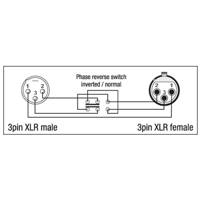Adapter, XLR hane 3-pin till XLR hona 3-pin, med fasomkopplare, guldpläterad. Säljs per styck.