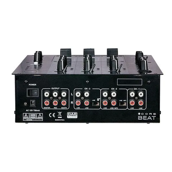Core Beat är lillebror till Core MIX-3 USB. Den har 6 linjeingångar, en mikrofoningång och en Bluetooth-uppspelningsmodul. Bluetooth-uppspelningsmodulen gör det möjligt att blanda dina anslutna spelare med trådlösa enheter som smartphones eller surfplattor. Den har även en ingång som kan växlas mellan linje- och MP3-nivå. MP3-nivån justerar ingångskänsligheten till rätt nivå för MP3-spelare, smartphones eller surfplattor. Nu kan du spela upp dina MP3-enheter direkt utan signalförlust. Den är byggd med komponenter av hög kvalitet för att få bästa prestanda och har ett separat faderkort för enkelt underhåll. Core Beat har alla funktioner du behöver för att få igång din DJ-karriär. Den är utrustad med VU-indikering på varje kanal, valbara cross-fader-kurvor, en talk over, utgångar för både master och bås och med -26dB tonkontroll klipper du vilken takt du vill. Låt Beat rocka!