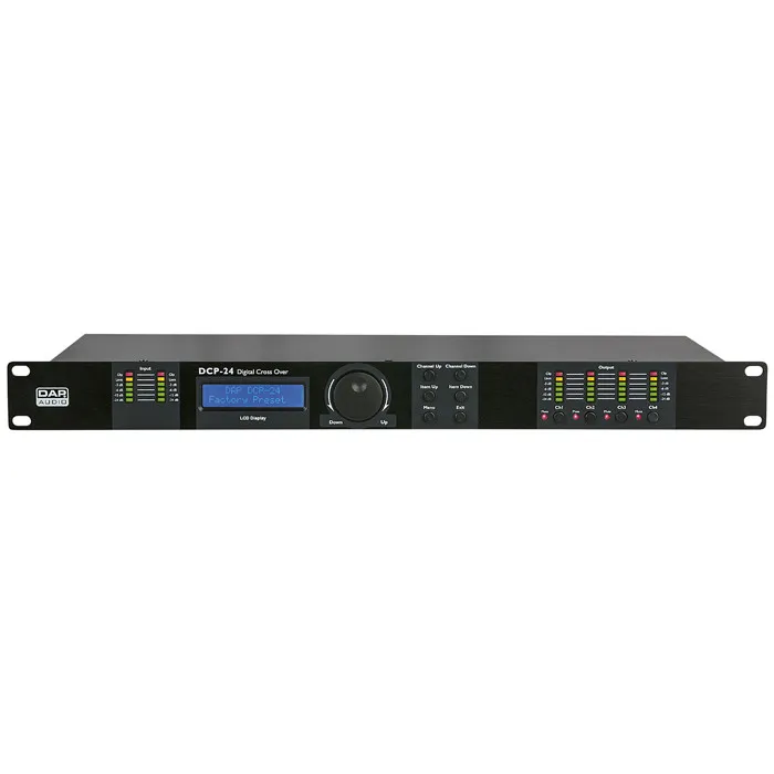 DCP-24 MKII är lillebror till DCP-26 MKII som har exakt samma egenskaper men har fyra utgångar istället för sex. Om du har en stereo sub top kombination och vill få ut maximal kraft ur ditt ljudsystem, utan risk för några skador, är det denna enhet som får jobbet gjort. Helt digital med alla funktioner du behöver för att ställa in och skydda ditt ljudsystem. Om du inte är bekant med högtalarprocessorer hjälper våra DAP-tekniker dig att komma igång med grundläggande standardinställningar. Fråga din leverantör eller ladda ner dem från www.dap-audio.info, ladda dem i minnet på din DCP-24 MKII med USB-Och du är redo att gå.