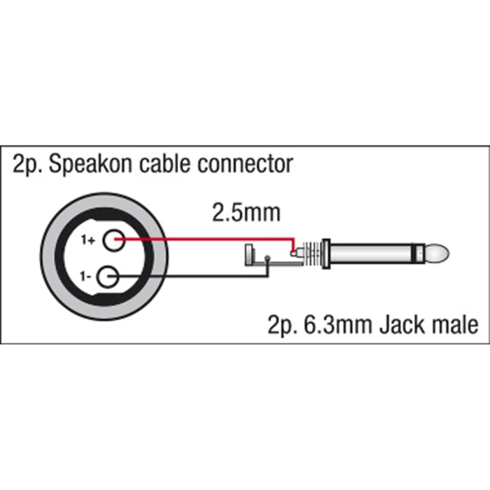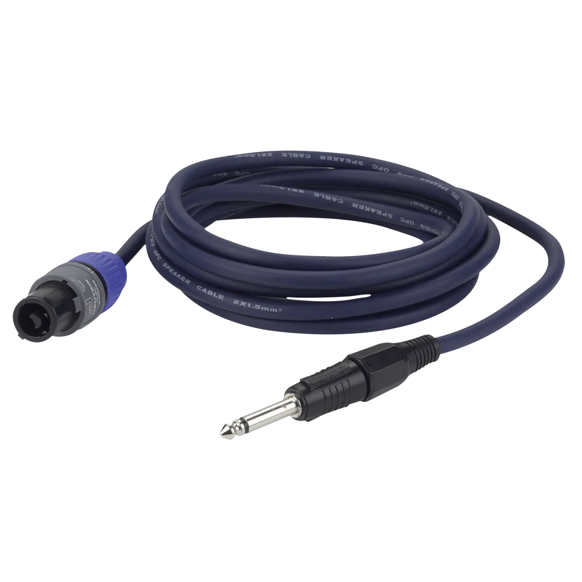 Högtalarkabel, 6.3mm mono TS till speakon hane, 2x 1.5 mm², Neutrik kontakter, 6.3 mm, PVC, blå, 3m.