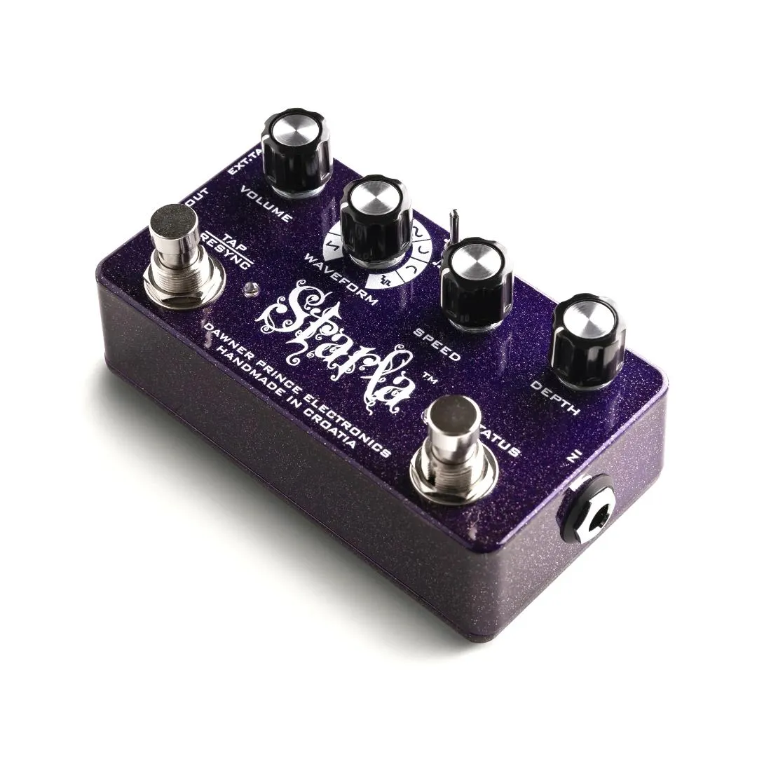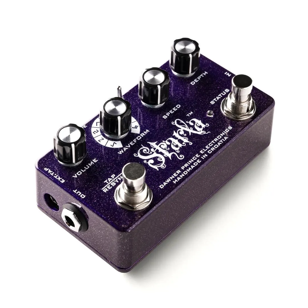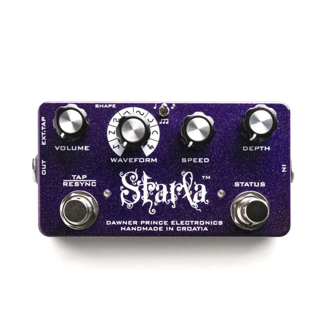 Vi tog en utmaning och gick ett steg längre genom att designa den mest kompakta storleken, toppljudande, alla funktioner tap tempo tremolo effektpedal nuförtiden! Starla är en syntes av två exakt kombinerade elektronik. Det är en superb ljudkvalitet analog tremolo som styrs av en mångsidig digital tap tempo mikroprocessor via optisk teknik, ljuskälla och fotocell.