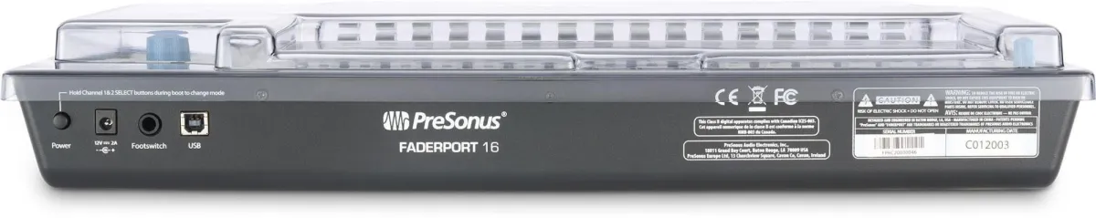 PreSonus FaderPort 16, känd för sitt expansiva 16-kanals kontrollgränssnitt och dess förbättring av mixningseffektivitet, har blivit ett centralt verktyg för audioproffs över hela världen. Som ett direkt svar på dess utbredda hyllning och det växande behovet av dedikerat skydd är vi glada över att kunna presentera Decksaver-skyddet för PreSonus FaderPort 16. Detta fodral, konstruerat av hållbart polykarbonat, är sakkunnigt utformat för att skydda din FaderPort 16 från damm, oavsiktligt spill , och stötar, vilket säkerställer att din utrustning förblir i toppskick.