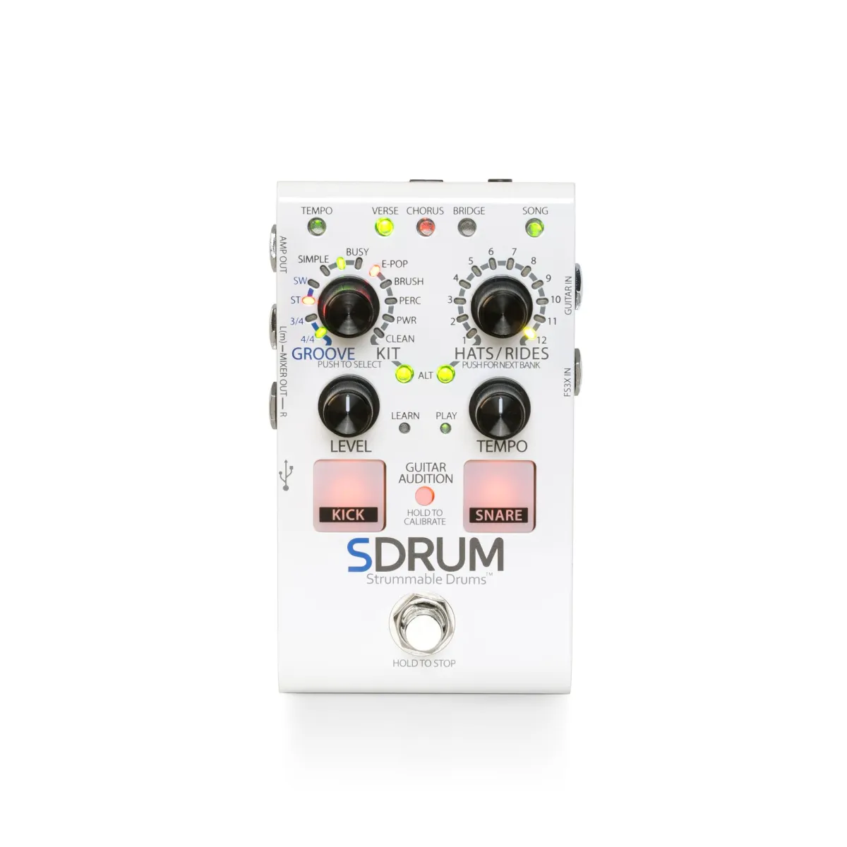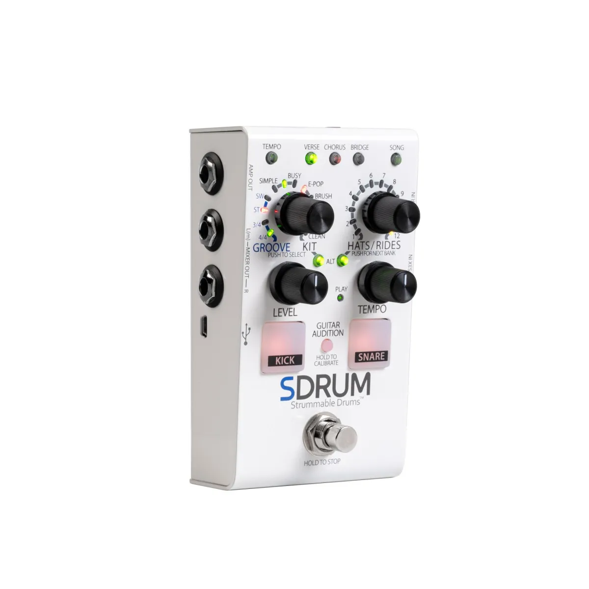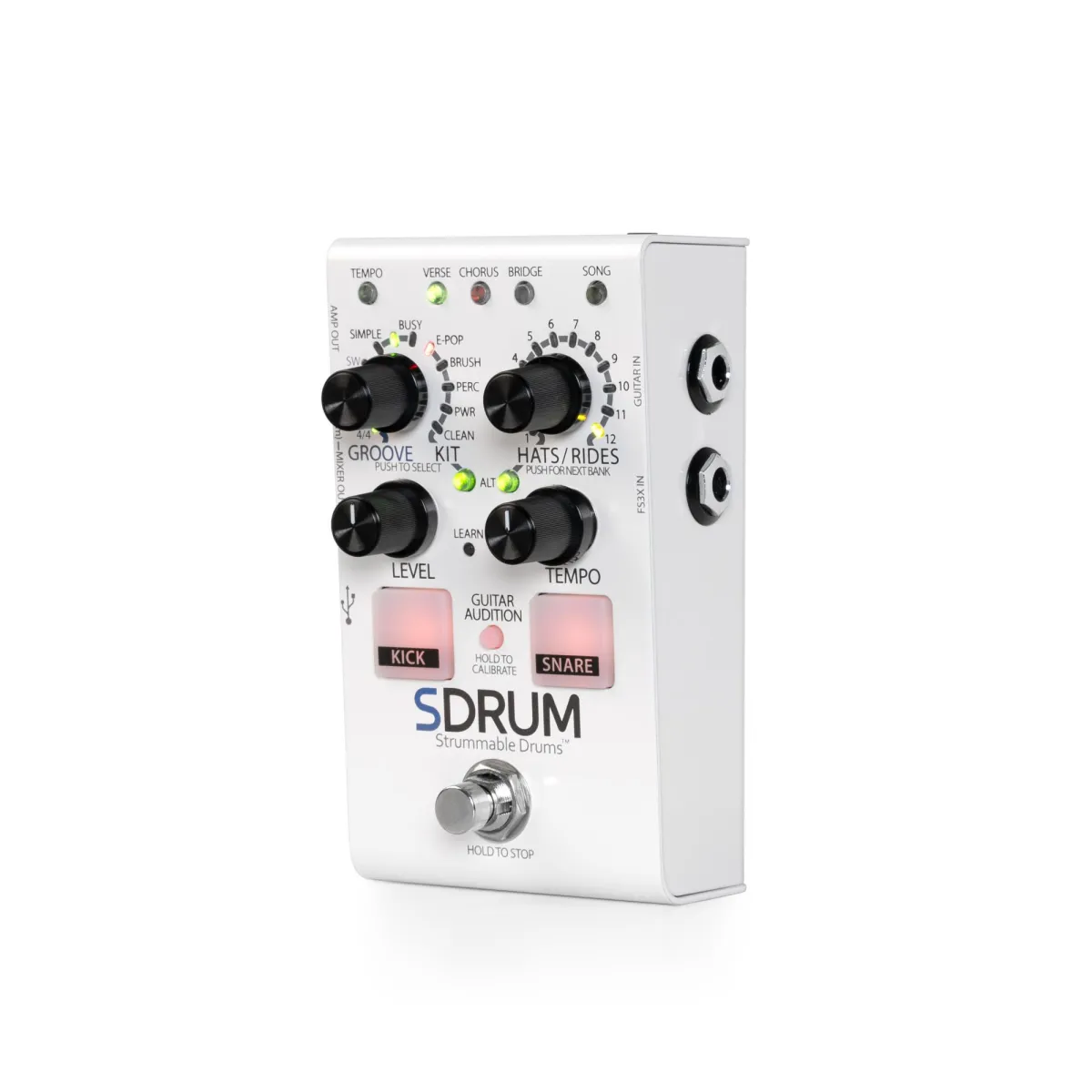 SDRUM är världens första intelligenta trummaskin för gitarrister och basister. SDRUM ger ett snabbt och roligt sätt att skapa professionellt klingande trummönster för övningssessioner, utforska sångidéer, spela in och uppträda.