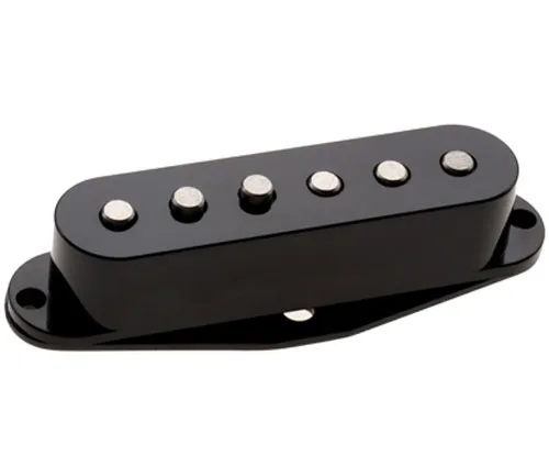 "Area 58™ DP415BK. There are two major differences between a great vintage Strat® pickup and an average one: treble response and dynamics. A great pickup is clear and bright, but not thin-sounding. A great one makes the sound jump out of the amp when you pick hard and drop way down when you play softly, and the tone varies when the string is picked at different spots. The best pickup we’ve ever heard like this was from 1958, and that’s what inspired the Area 58™, with two major differences. Our pickup has way less magnet pull, and virtually no hum. Recommended For Neck and middle, can also be used in bridge. Tech Talk The Area 58™ has obvious similarities to the Virtual Vintage® 2.1 it replaces, but there are several non-visible performance factors that have changed. Dynamic range and string definition are greatly increased, leading to improvements in both clean chord-playing and overdriven soloing. The Area 58™ is very sensitive to small height adjustment differences: close to the strings produces a fatter, slightly compressed blues tone and further away yields crystal clean sounds. The final improvement is in noise reduction. All of the Virtual Vintage® pickups have better hum cancellation than full-size humbuckers. Area 58™ and Area 61™ are even quieter. Specs. DP415BK: Finish: Black. Wiring: 4 Conductor. Magnet: Alnico 2. Output mV: 125. DC Resistance: 6.15 Kohm. Year of Introduction: 2006. Patent: 4,442,749 & 5,908,802."