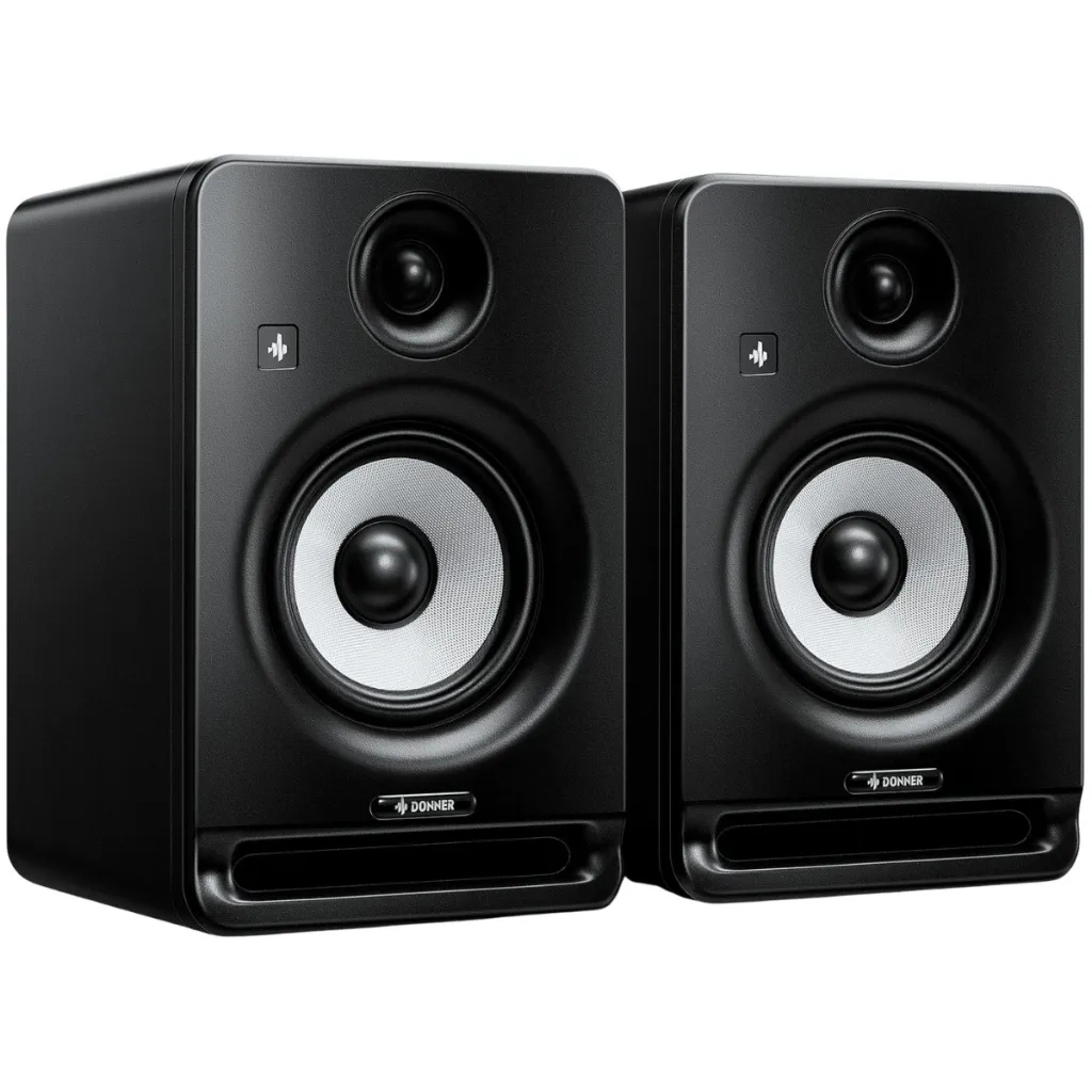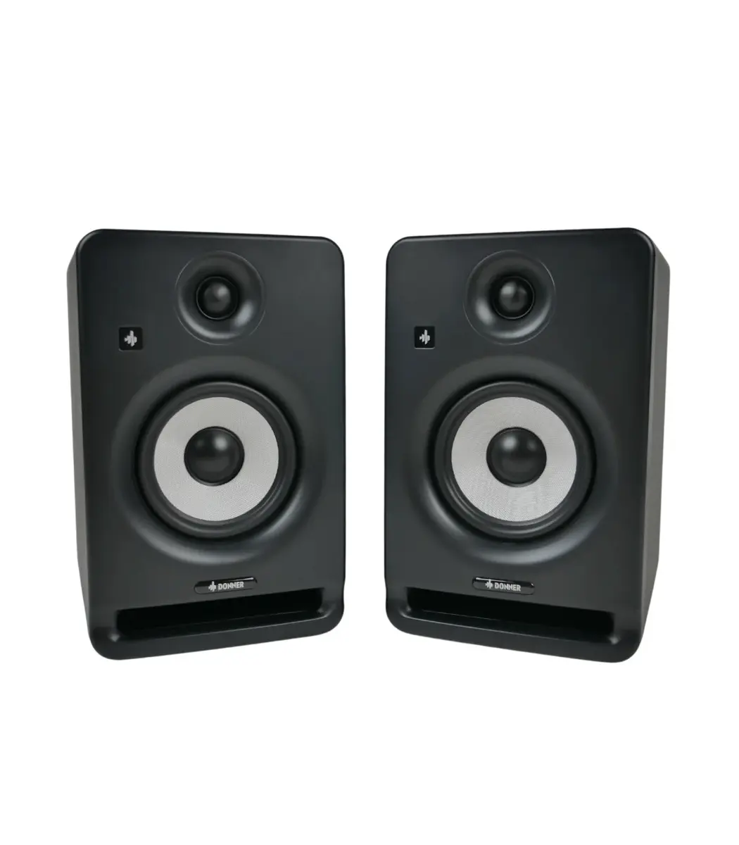Donner DMS 5.5 består av en aktiv och en passiv monitor. Den aktiva högtalaren har en inbyggd förstärkare, vilket gör att du slipper en separat förstärkare. Det ger en enkel installation – perfekt för hemmastudion eller skrivbordet.