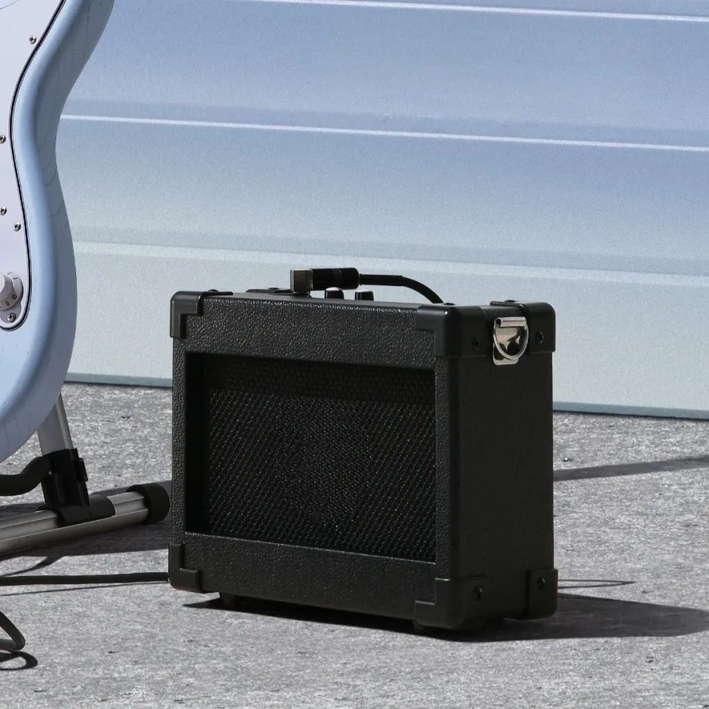 Paketet inkluderar en Donner 5W transistorförstärkare med clean- och drive-läge. Utrustad med aux-ingång för att spela till musik från telefon eller surfplatta. Kan användas med batteri eller extern strömförsörjning, perfekt för hemmabruk och mindre jam.
