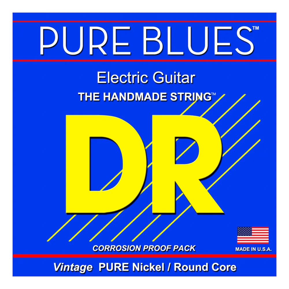 In the DR tradition of using old style construction to improve modern performance, PURE BLUES electric guitar strings are designed with pure nickel wrap wire, round wound upon round cores. While this is a slow, expensive method of string making, it does produce a string acclaimed for increased sustain, vintage tone, and great low tones for playing rhythm to lead. The extra step of winding pure nickel around a round core gives the PURE-BLUES a punch that players say they are surprised to get in a vintage string. Sounds great on any vintage guitar!!
