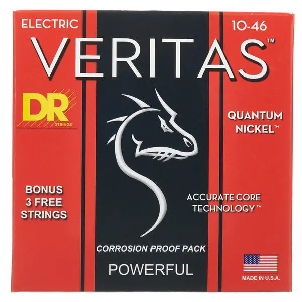 VTE-10 Veritas är ett komplett set strängar till elgitarr i tjockleken 10 till 46. VTE-10 är gjorda med en rund kärntråd, som är lackerad med en speciell blandning och därefter lindad med en Quantum nickeltråd. Lackeringen håller den lindade tråden på plats och skyddar kärnan mot korrosion. Resultatet är en sträng, som håller tonen och intonationen längre än konventionella strängar.