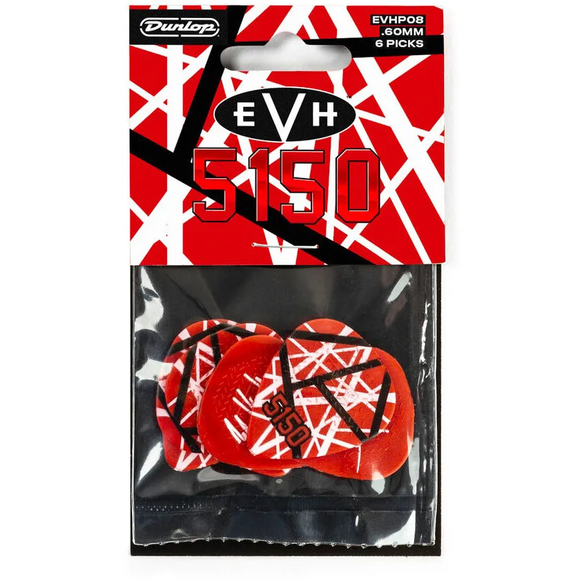 Som en hyllning till mannen själv har vart och ett av valen som ingår i Dunlop EVHP08 6-pack fått samma "5150"-lackering som den legendariska Kramer-gitarren som sågs i händerna på Eddie Van Halen mellan 1984 och 1990. Vid 0,60 mm tjocka, dessa plektrum är också Eddies föredragna mätare, och kommer med den ultrasäkra känslan av Dunlops egen Max-Grip texturerade profil. Detta paket ger dig sex val.