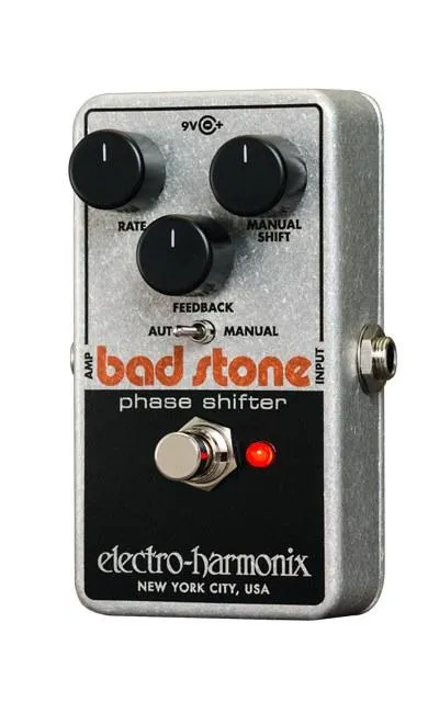 EHX har återuppväckt den legendariska Bad Stone Phase Shifter. Priserna på 1970-talets vintage Bad Stones har skjutit i höjden och nu har du chansen att få en nyutgåva som är trogen den ursprungliga kretsdesignen och kontrollayouten med tre knappar, men som har uppdaterade förbättringar för den moderna spelaren. Bad Stone levererar otroliga sex steg av fasförskjutning plus ett manuellt läge som låter spelaren frysa fasen. Rate-ratten styr fasskiftningshastigheten som går från en mycket långsam swoosh till en snabb, oscillerande warble. Feedback bestämmer djupet på phase-effekten och en vippströmbrytare låter användaren välja Auto eller Manual mode. Förutom det gjutna paketet finns andra moderna bekvämligheter som true bypass för maximal signalvägsintegritet, en LED för effektstatus och ett AC-uttag som accepterar en EHX9.6DC-strömförsörjning.