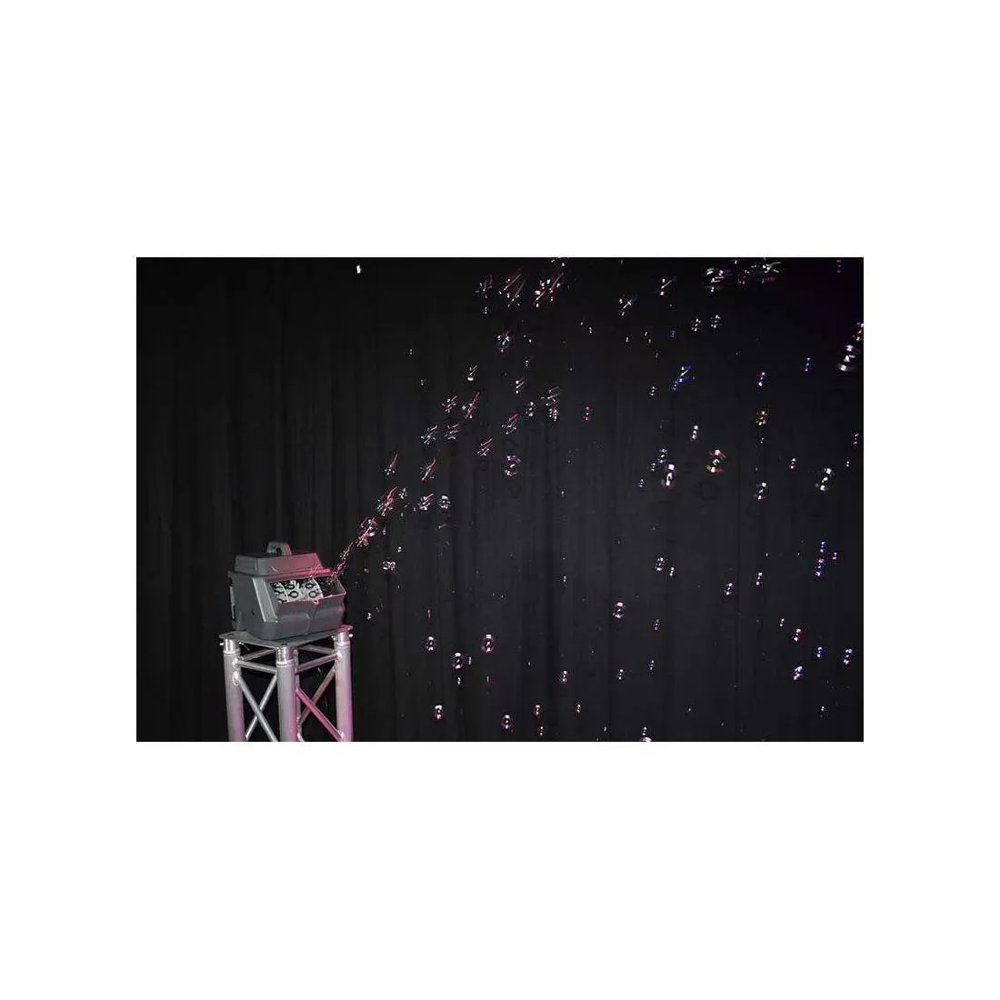 Lägg till en touch av bubbelmagi var du än går! Eliminator Lighting Bubbletron EXL GO, den ultimata batteridrivna bubbelmaskinen för att lägga till en touch av magi till din scen eller mobila framträdande eller fest. Enkel att använda, häll bara i bubbeljuicen, slå på den och låt Bubbletron EXL GO arbeta med sin bubblande magi. Med sin högeffektsfläkt och dubbla bubbelstavar genererar detta bärbara underverk hundratals bubblor per minut, vilket säkerställer en fascinerande display. Det extra stora, hållbara höljet och det unika systemet med dubbla fläktar driver bubblor längre upp i luften. Dess 2-liters vätsketank och 4,0 Ah batteri ger 3 timmars non-stop drift. Perfekt för band, DJs, klubbar, evenemangsproducenter och scener, Bubbletron EXL GO levereras komplett med en BUBGO-WR trådlös fjärrkontroll för extra bekvämlighet.