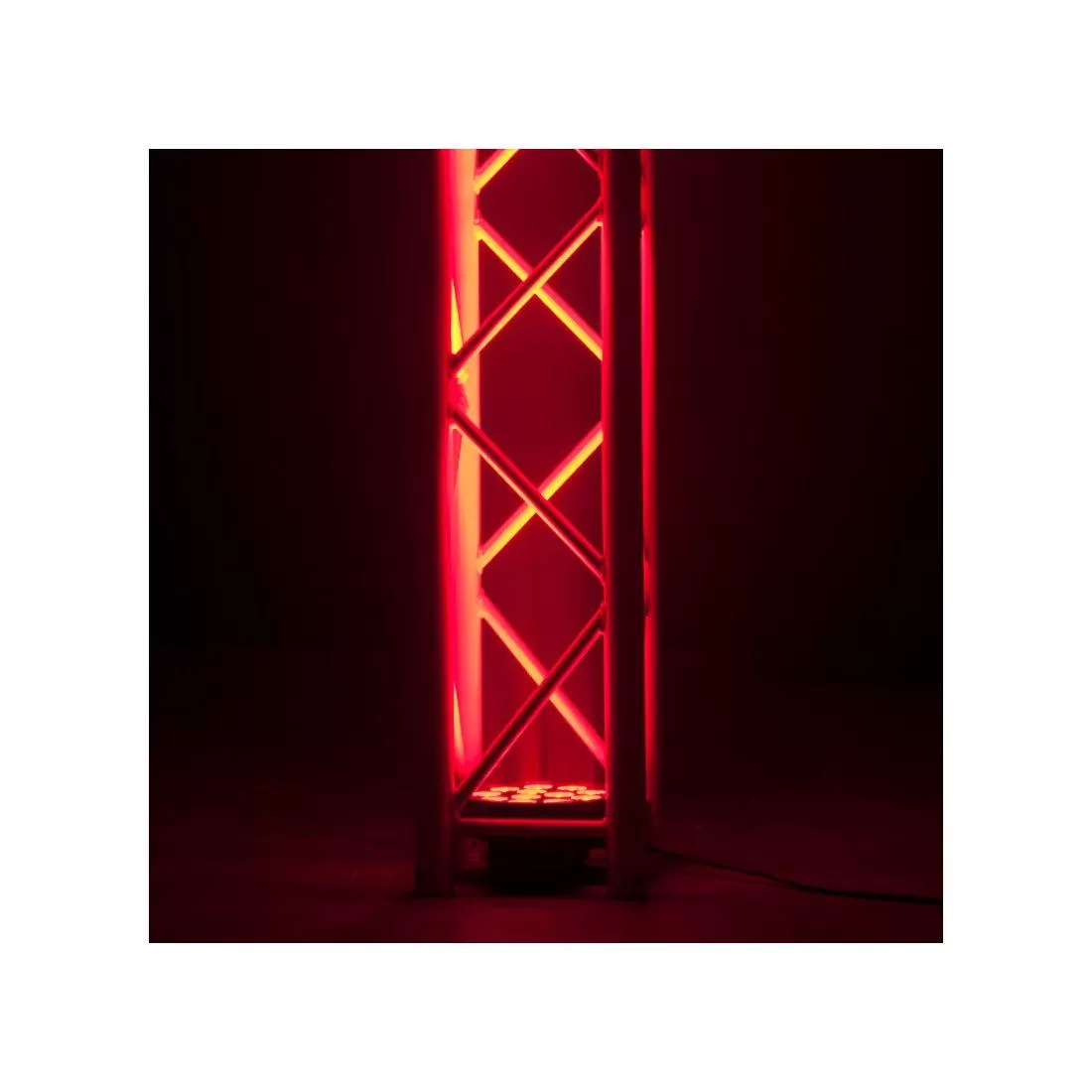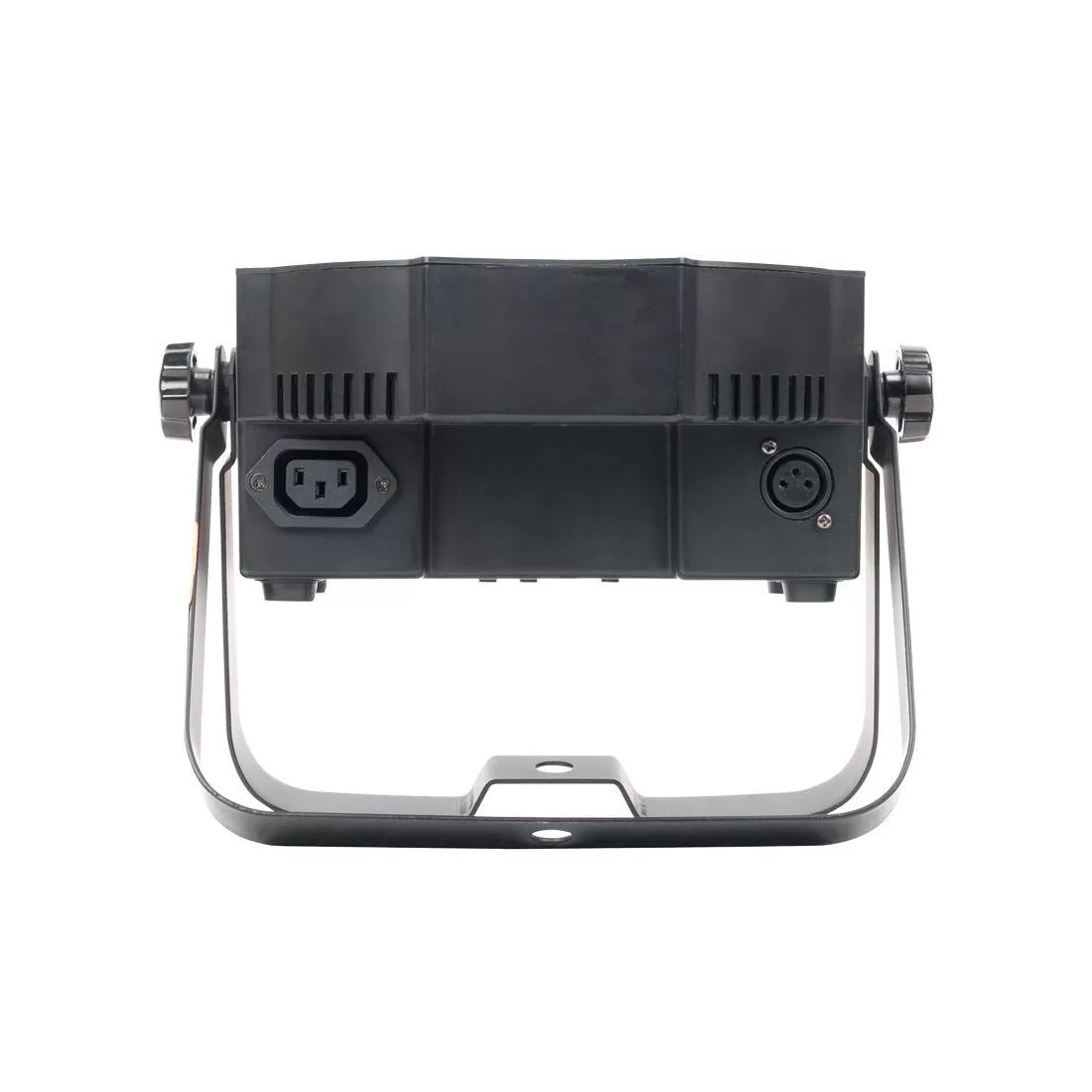 Denna Par är intelligent designad så att den kan sitta direkt på marken eller inuti fackverket utan det hängande fästet eftersom power & DMX Ins and Outs sitter på sidan av fixturen, inte på baksidan. Dess fötter och saxok möjliggör maximal belysningsmångsidighet som kan användas som golvtvätt eller hängande från fackverk eller rör.