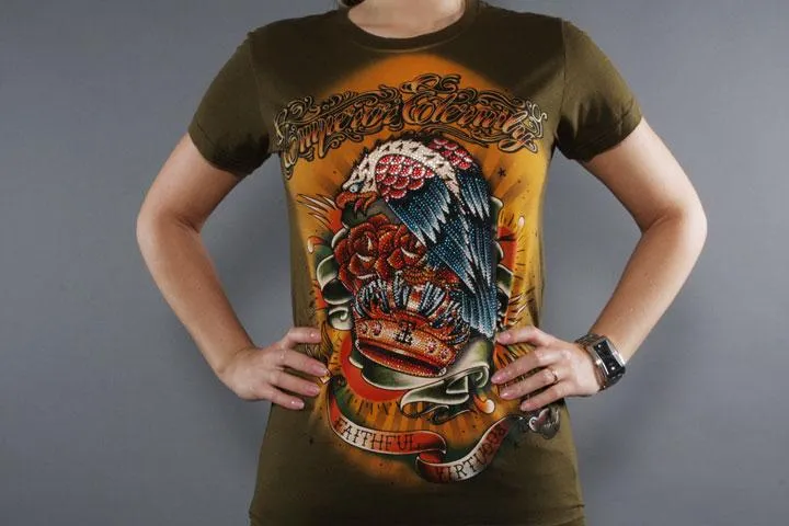 Riktigt cool färgglad t-shirt från Emperor Eternity för tjejer. Handgjord i 100% bomull. Snyggt tryck med kristaller på framsidan och tryck på baksidan. Grön, S/M.