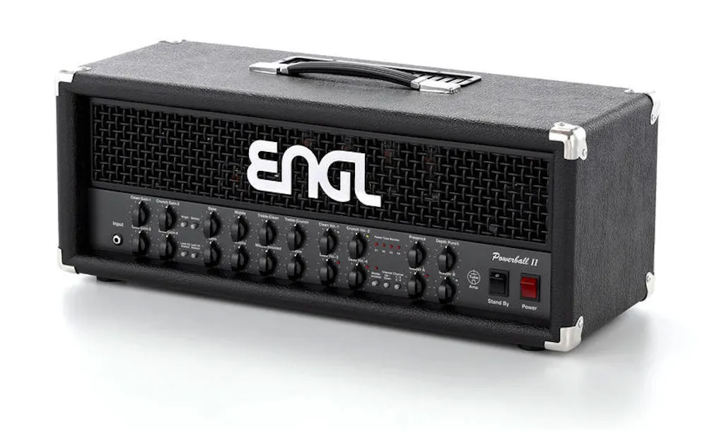 Engl Powerball II - 4-kanals ventilhuvud med 4x förstärkningskontrollrattar (clean gain 1, crunch gain 2, lead gain 3, lead gain 4), 2x ljus/bottenljudsomkopplare för lead kanal 3 och för lead kanal 4, mellanförstärkt switching, elektronisk kraftrörsövervakning, 100W, 6L6GC ventiler, 2x mastervolymer, justerbar effektslinga (parallell/seriell) kan nu aktiveras via fotkontakt, två olika ledningsljud, justerbar noise gate på ledningskanal kan nu aktiveras via valfri fotkontakt