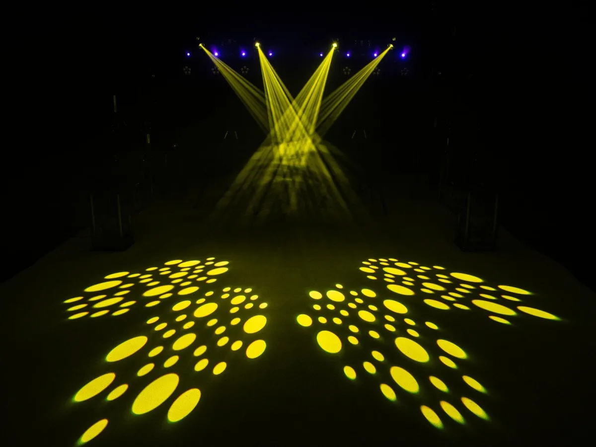 En derby, fyra spotlights och två skannrar, alla individuellt styrbara