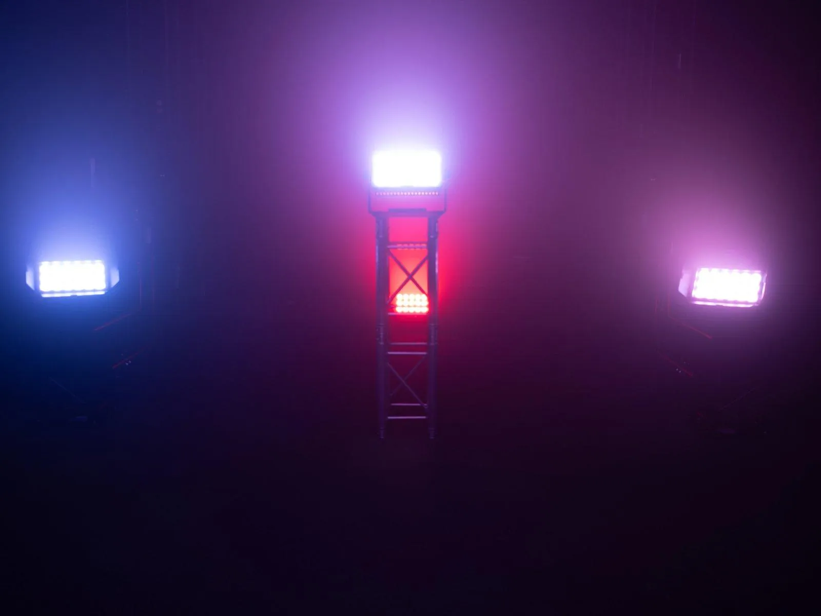 Tyst IP65 LED-strålkastare med RGBW-färgblandning, CRMX, diffusorhölje, Barndoor, IR-fjärrkontroll