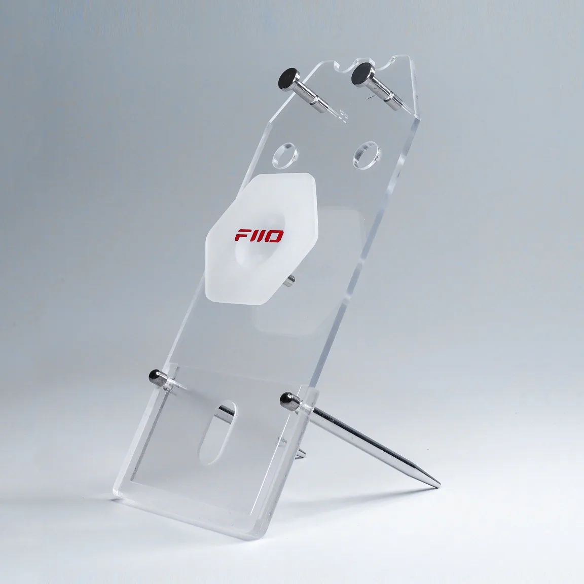 FiiO HS04A är ett stilrent och praktiskt stativ för IEM-hörlurar. Den minimalistiska designen framhäver dina hörlurar samtidigt som de förvaras säkert och lättillgängligt.