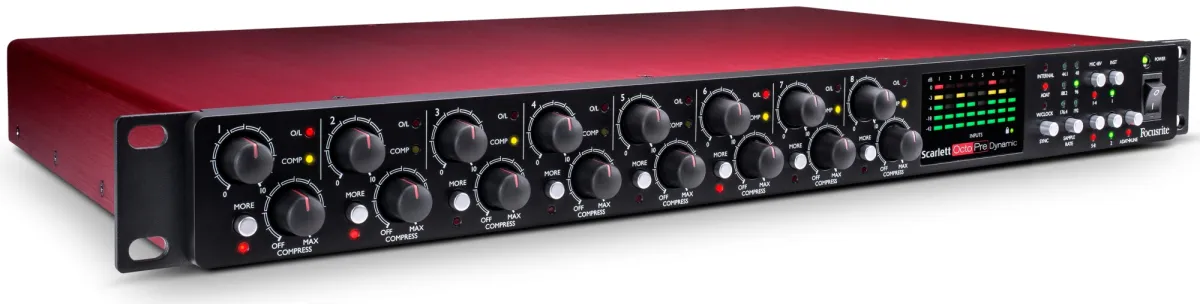 With high-headroom inputs and a pad on every channel, Scarlett OctoPre is ideal for tracking drums as well guitars, keyboards, vocals - and more.