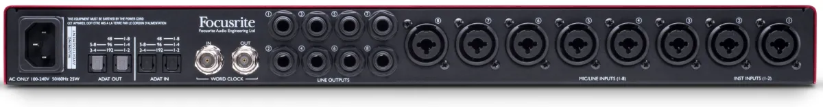 Åtta balanserade linjeutgångar, hämtade direkt från ingångarna gör att Scarlett OctoPre kan användas i en live-situation samtidigt som den fångar inspelningen via den digitala ADAT-utgången.