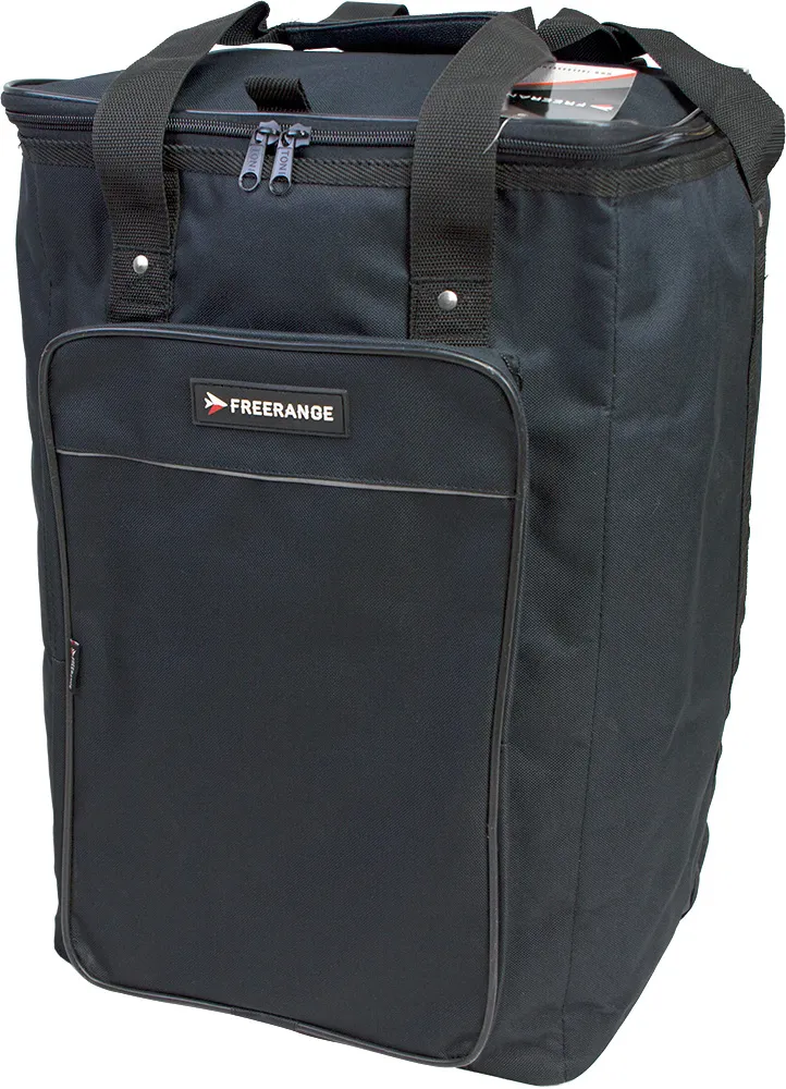 Cajon gigbag med 6mm Epe stoppning. Yttermaterial av laminerat, kraftigt Codura tyg som är slitstarkt och med mycket god vattentålighet. Stoppning av högdensitets Epe material som ger oerhört bra skydd även i tunna lager. Utmärkt kvalitet på arbete och detaljer. Silver reflex linje ger extra säkerhet under den mörka årstiden. Innermått 50cm x 33cm x 33cm så den passar även lite större Cajoner.