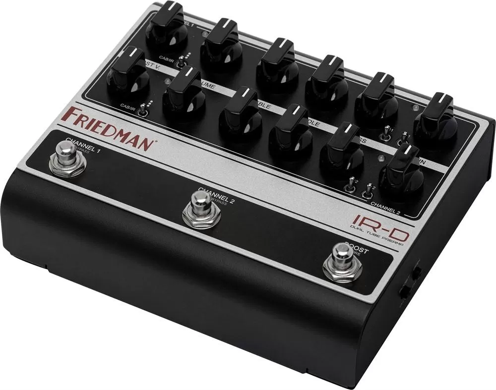 IR-D stoltserar med två helt oberoende identiska fotväxlingsbara kanaler som är baserade på Friedmans legendariska Dirty Shirley/Twin Sister-design. Denna Dave-moddade JTM45-krets levererar den brittiska signaturton som Friedman är känd för.