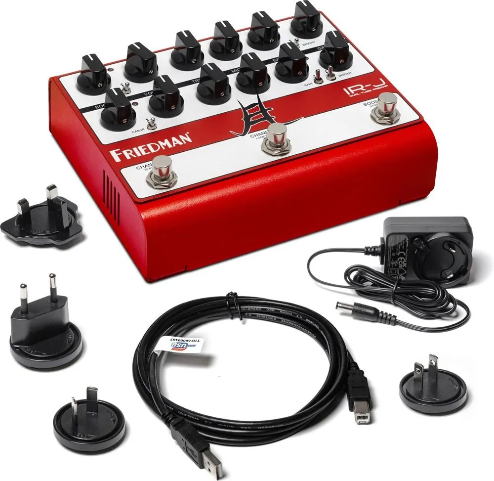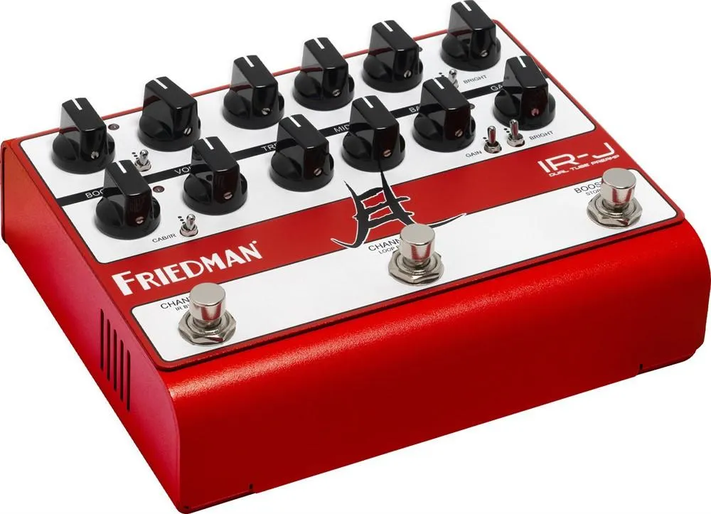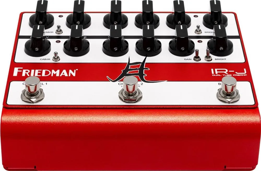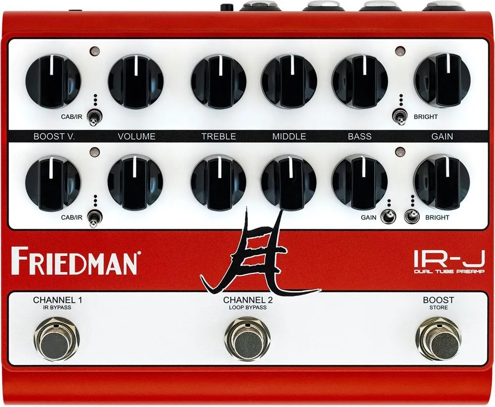 IR-J simulerar inte en Friedman rörförförstärkare. Den är en sådan. Medan andra preamp-pedaler använder rör för att ”värma upp” sin digitala eller solid-state-krets, är två glödheta 12AX7 preamp-rör, som arbetar med över 300 volt, IR-J:s bultande hjärta. IR-J är en äkta preamp på alla sätt och levererar all den ton, respons, förstärkningsegenskaper och harmoniska komplexitet som du förväntar dig av en Friedman-design.