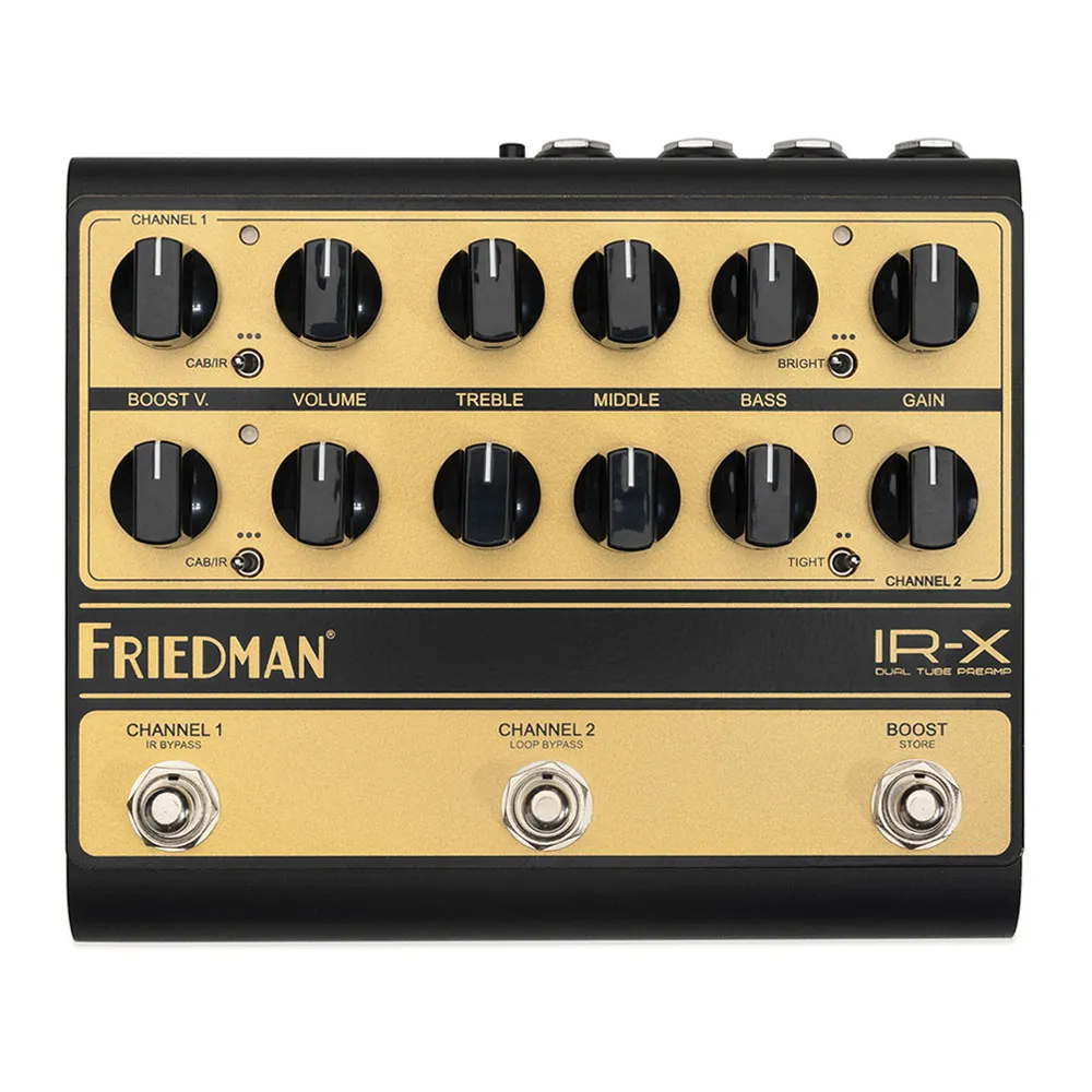 IR-X simulerar inte en Friedman-rörförförstärkare. Det är en. Medan många tillgängliga förförstärkarpedaler använder rör för att "värma upp" sin digitala eller solid-state krets, är två glödande varma 12AX7 förförstärkarrör, som körs på rätt högspänning, den här pedalens bankande hjärta. En äkta förförstärkare på alla sätt, IR-X levererar all ton, respons, förstärkningsegenskaper och harmonisk komplexitet du förväntar dig av en Friedman-design.