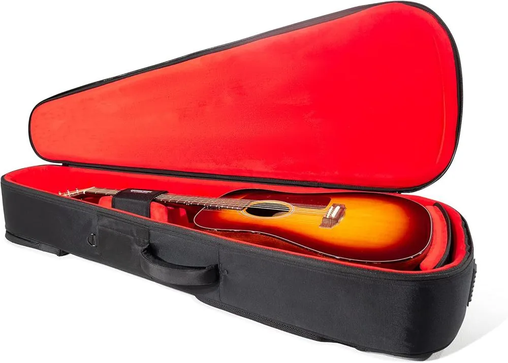 Passar akustiska gitarrer i Dreadnaught-stil | Invändiga mått: 44,5”/1130 mm (total längd) x 13”/330 mm (övre längd) x 14,6 tum/371 mm (mittomslag) x 16,5 tum/419 mm (nedre längd) x 6,5 tum x 165 mm (huvudstocksbredd 5,5 tum) /140 mm (kroppshöjd)