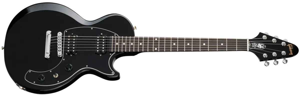Les Paul™ Music City Special 50th Anniversary Ebony är en modern version av två historiska Gibson-modeller, inspirerad av 70-talsmodellen Marauder och Music City Jr. Den hyllar Gibsons 50-åriga produktion av gitarrer i Nashville och erbjuder utmärkt värde för dagens spelare. Gitarren har en lätt, konturerad kropp av poppel, en snabbspelande lönn-hals med Slim Taper™ profil och en svart ebenhols-greppbräda med 22 jumbo-band. Utrustad med två Gibson 70s Tribute humbucker™ pickups och kromad hårdvara, levereras den med ett mjukt fodral. Modellen är begränsad till 500.