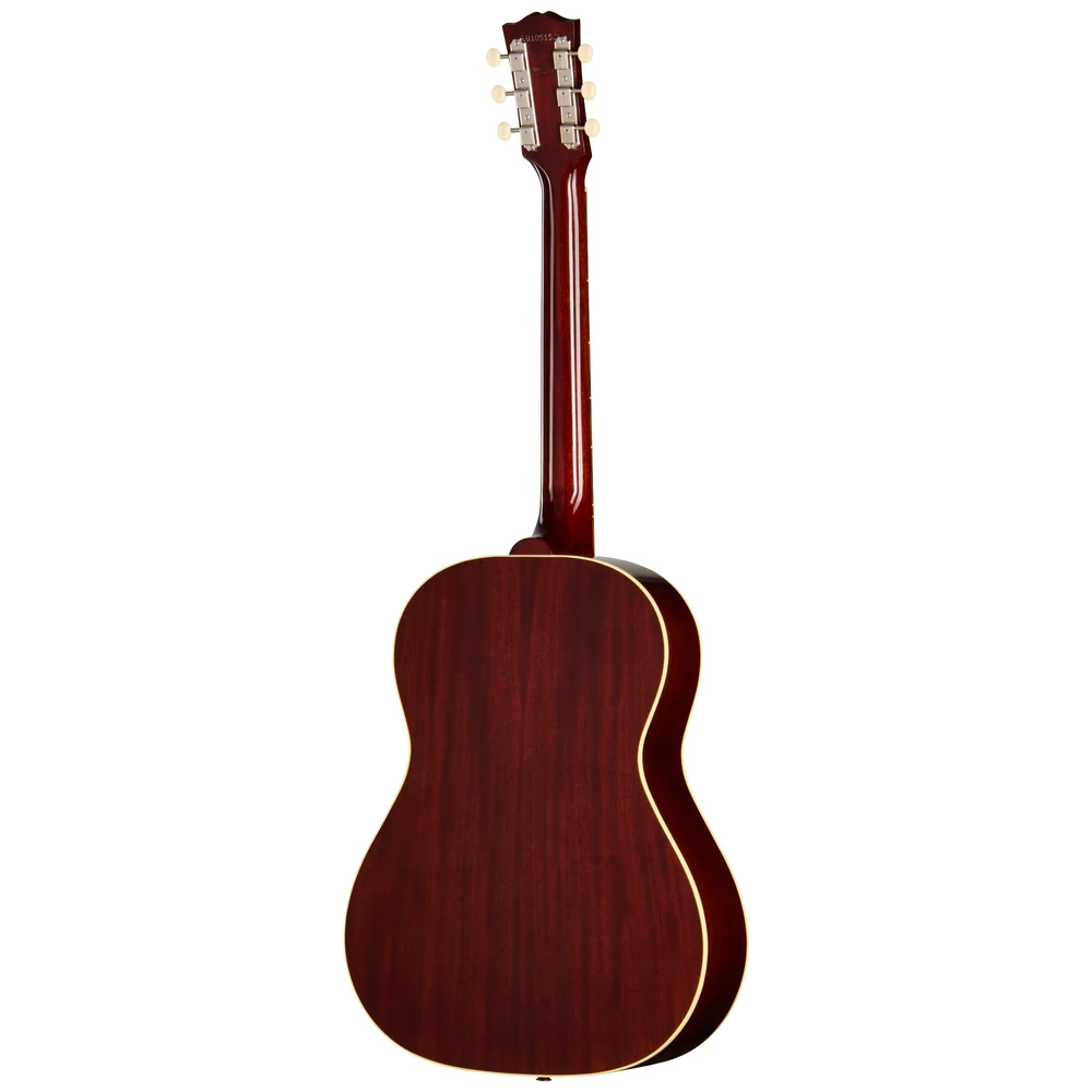 Utseendet kompletteras av ett sluttande rektangulärt rosenträstall med två mother-of-pearl-prickar, bensadel och stallsadel, TUSQ-stallpinnar, Grover Strap-stämskruvar med vita knappar samt ett tortoise teardrop-plektrumskydd för autentisk vintagekaraktär. Sitkagranlocket ger en livlig, klar och balanserad ton som skiljer sig från krigstidens LG-2-modeller med mahognylock och gör den mångsidig för många genrer och spelstilar.