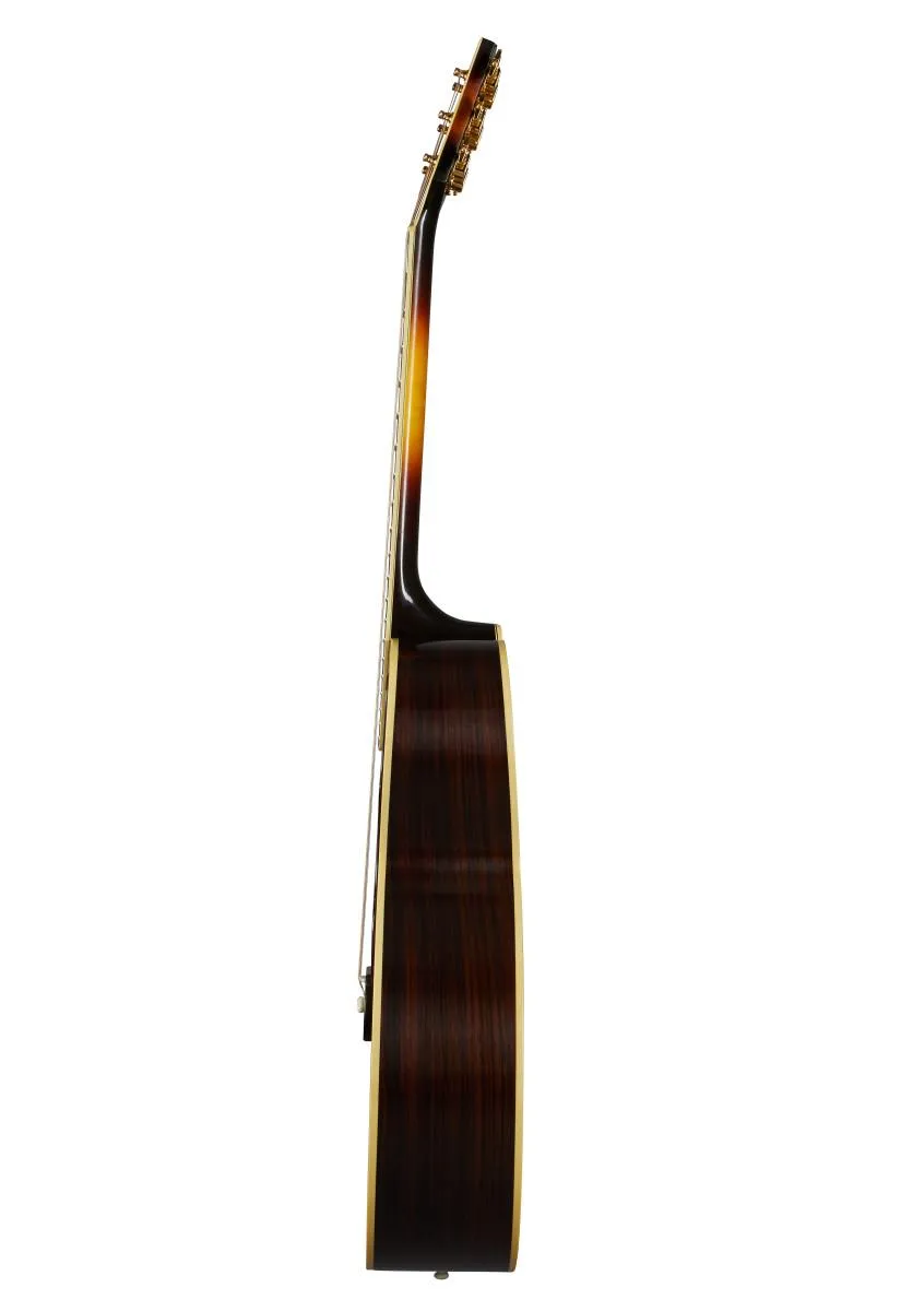 The Acoustic Custom Shop har återskapat King of the Flat-Tops. En av Gibsons mest kända modeller, detta historiska återutgivningsinstrument är handbyggt i Gibsons berömda Bozeman-anläggning med de finaste materialen och utformat efter dess motsvarigheter från slutet av 1930-talet. Var och en är konstruerad med en utvald termiskt åldrad Adirondack-topp i röd gran med limstag i läder, baksida och sidor av rosenträ, och förstklassig ebenholts för greppbrädan och bryggan. Inga detaljer lämnas orörda: den bundna greppbrädan, Gibson-inlägget i vintagestil och det unika valskyddet ger anpassade detaljer över hela denna autentiska rekreation.