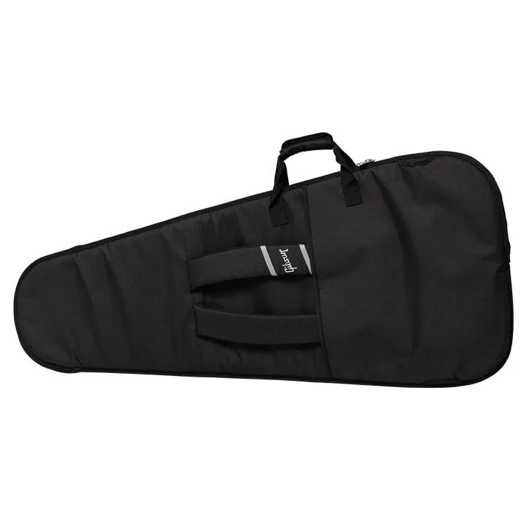 Take your Gibson instrument with you in one of our Premium Gig Bags. They have a rugged polyester exterior and plush-lined interior to help keep your instrument safe and secure and come equipped with two external accessory compartments that are perfect for straps, picks, cables, and other essentials. This Premium Gig Bag is designed to hold Explorer™, Flying V™, and Firebird™ models.