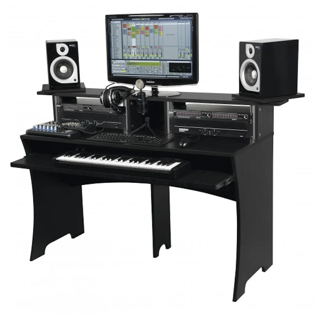 Tillräckligt med plats för PC-tangentbord, mus, studiomixer och annan utrustning