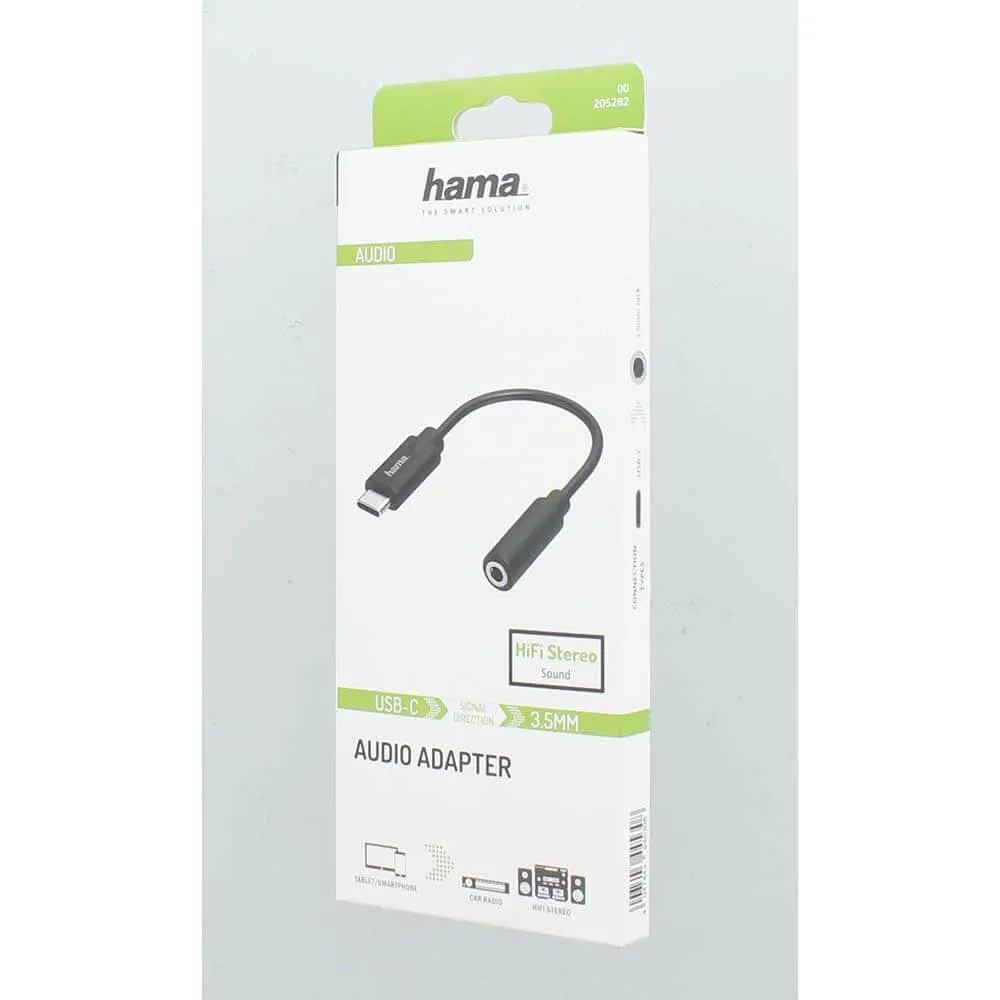 Hama Adapter Audio USB-C till 3,5 mm stereo. Enastående ljudkvalitet tack vare högkvalitativ digital/analog omvandlare (DAC)
